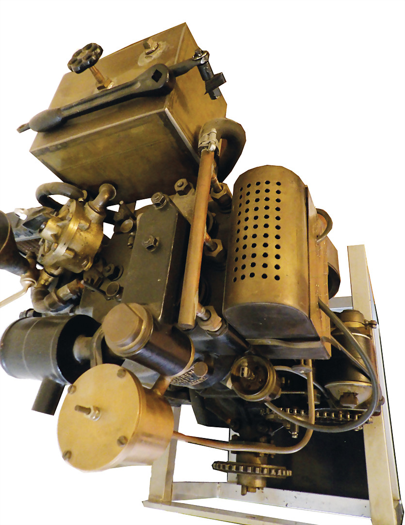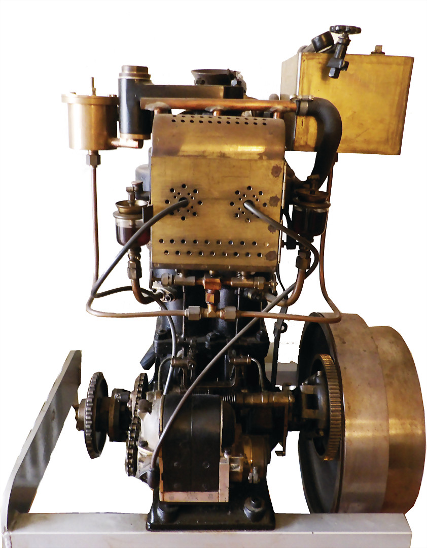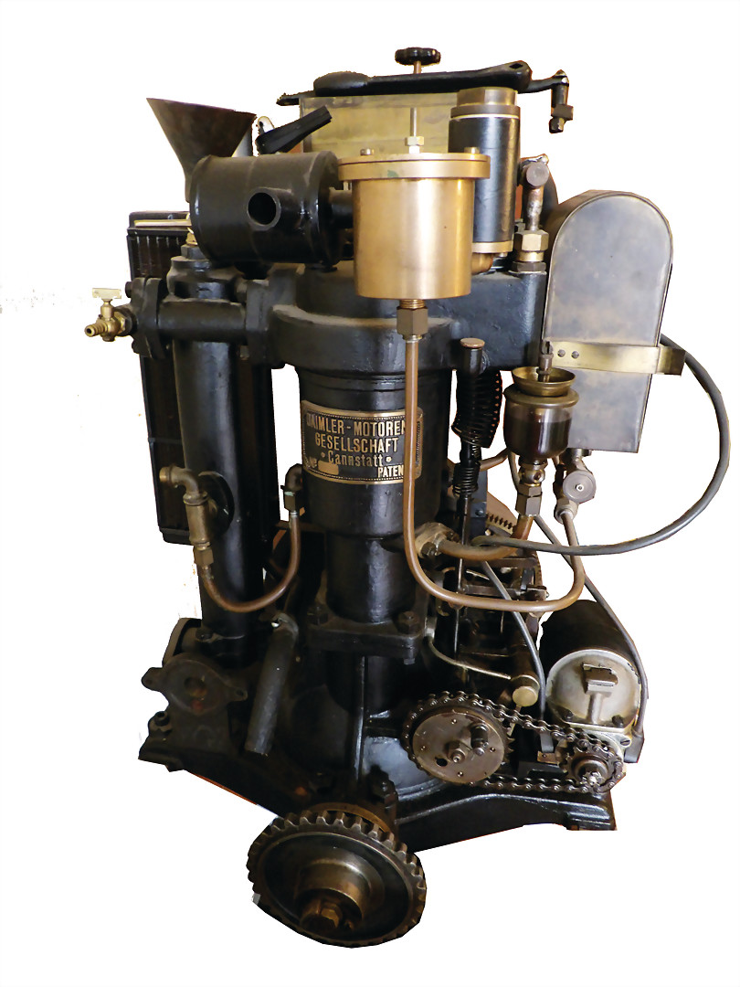 Original Daimler Phönix Motor, Baujahr um 1899. Dieser Motor besitzt bereits die neue Bosch -Niederspannungszündung, die Daimler ab 1899 anstatt seiner bisherigen Glührohrzündung verwendete. Verbaut wurden diese Motoren in den neuen Daimler Riemenwagen und in den Daimler Phönix Wagen. Während der Motor im Riemenwagen noch hinten eingebaut wurde hatte der Phönix Wagen vorne bereis eine Motorhaube unter dieser der Motor für den Antrieb sorgte.Schon damals entstand die Verbindung zu Emil Jellinek, der schon im Jahr 1897 einen Daimler Riemenwagen gekauft hatte und der in der Folge für ständige Verbesserungen an Daimler Fahrzeugen sorgte. Durch die Verbindung entstand schließlich der Markennahme MERCEDES. Dieser Motor ist sicher ein Meilenstein der Automobilgeschichte.