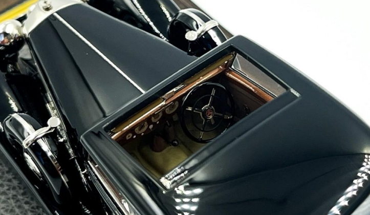 EMC-Pivtorak hat nach langer Zeit wieder ein Modell eines Mercedes-Benz Wagen herausgebracht. Es handelt sich um eine Variante des Mercedes-Benz 540K der Deutschen Botschaft in London, ein Wagen, der bereits im INFO Nr.1 /2024 vorgestellt wurde. Die heutige Variante unterscheidet sich hauptsächlich durch ein geöffnetes Stahl-Schiebedach, folglich auch einsehbare Sonnenblenden, einfache schwarze Reifen, und einem englischen Kennzeichen am Wagen.