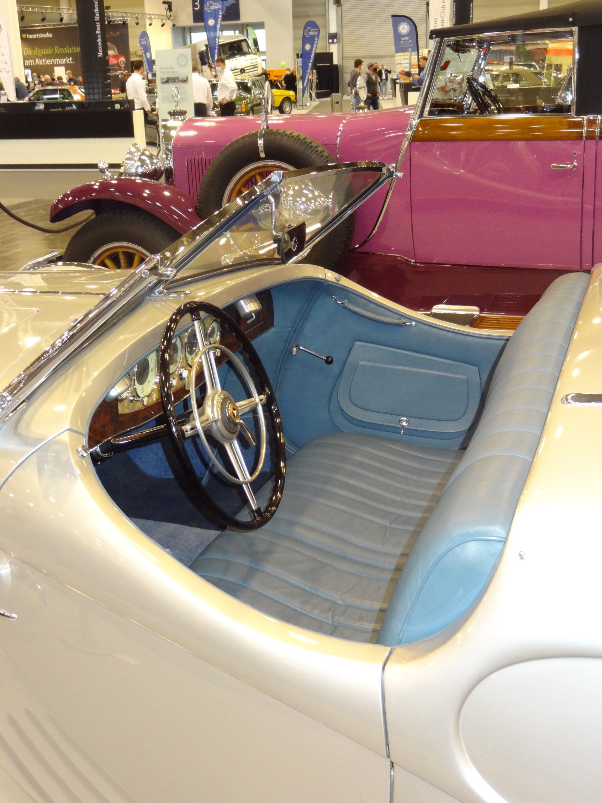 Die Ankunft in der für mich als Mercedes-Interessierten in der Halle 1 war überraschend. Was die Mercedes-Benz Clubs hier zusammengebracht und in einer Qualität präsentiert haben ließ die Abwesenheit des Mutterhauses fast vergessen… aber nur fast, denn neben den sonst zu führenden guten Gesprächen mit der Clubbetreuung fehlte auch der Classic-Shop mit seinen Produkten.