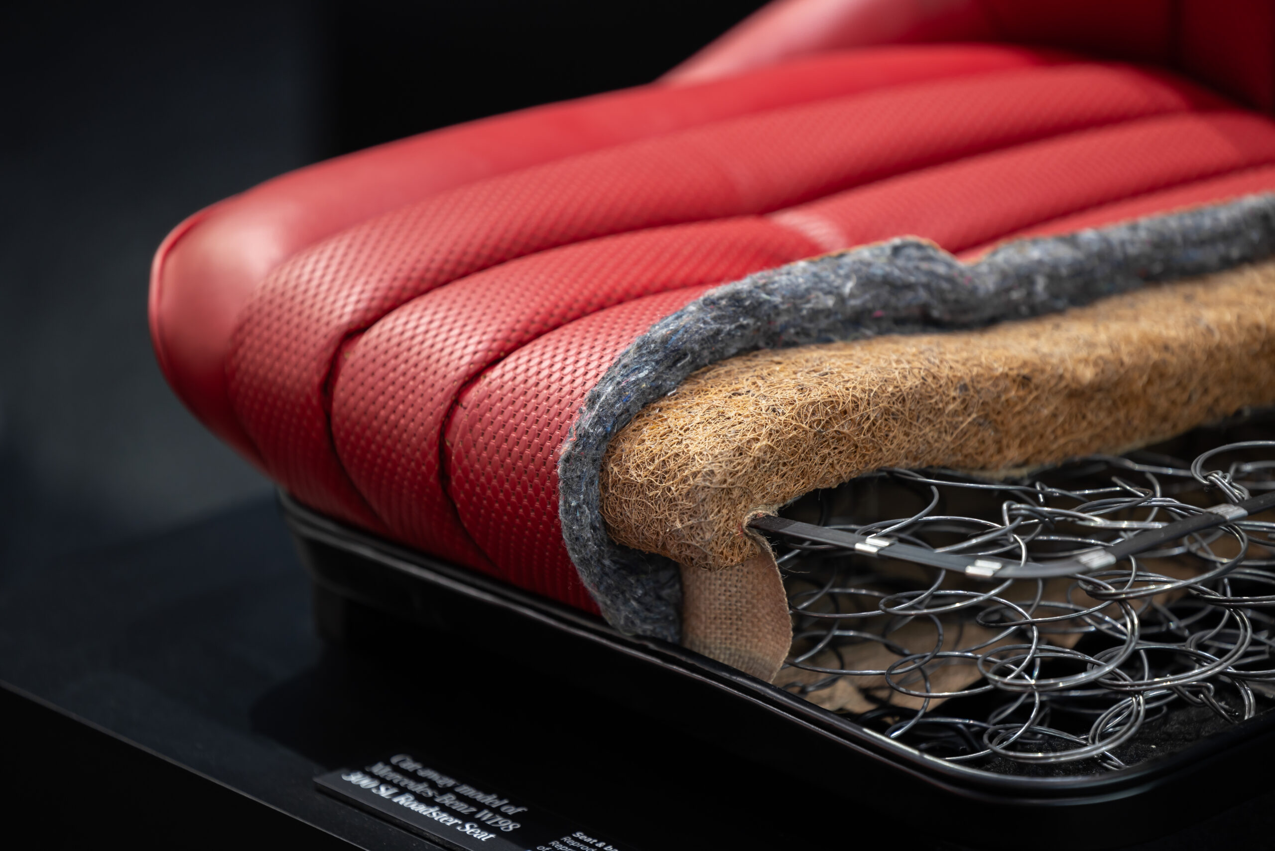 Es braucht tiefes Wissen über authentische Materialien und ihre historisch korrekte Verarbeitung, um klassische Fahrzeuge für die Zukunft zu erhalten. Das Mercedes-Benz Classic Center gibt diese spezifischen Kenntnisse als Grundlage der täglichen Arbeit von Generation zu Generation weiter. Hohe Bedeutung haben sie bei Werksrestaurierungen. Mit Kompetenz und Erfahrung widmet sich das Classic Center dieser Aufgabe, wie ein Mercedes-Benz 300 SL (W 198) aus dem Jahr 1955 beweist – das Fahrzeug befindet sich derzeit in Restaurierung. Auf dem Messestand zu sehen ist die bereits fertig instand gesetzte Rohkarosserie dieses ikonischen Fahrzeugs. Ziel bei der Restaurierung ist stets, so viel originale Substanz wie möglich zu erhalten. Auch die Wahl der Lackierung in silbergraumetallic (DB180) und der Innenausstattung in „Gabardine blau kariert“ (L1) wird der einst gewählten Ausstattung vor exakt 70 Jahren folgen. Diesen „Flügeltürer“ bietet Mercedes-Benz Classic zum Kauf an.