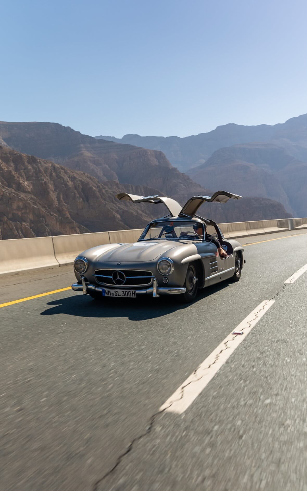 Die Mille Miglia Experience UAE brachte 90 Crews zusammen, die sich auf eine Reise begaben, inspiriert vom Geist der originalen 1000 Miglia. Die Strecke führte durch die atemberaubenden Landschaften der Vereinigten Arabischen Emirate und bot eine Mischung aus Motorsportpräzision, kultureller Vielfalt und spektakulären Ausblicken.