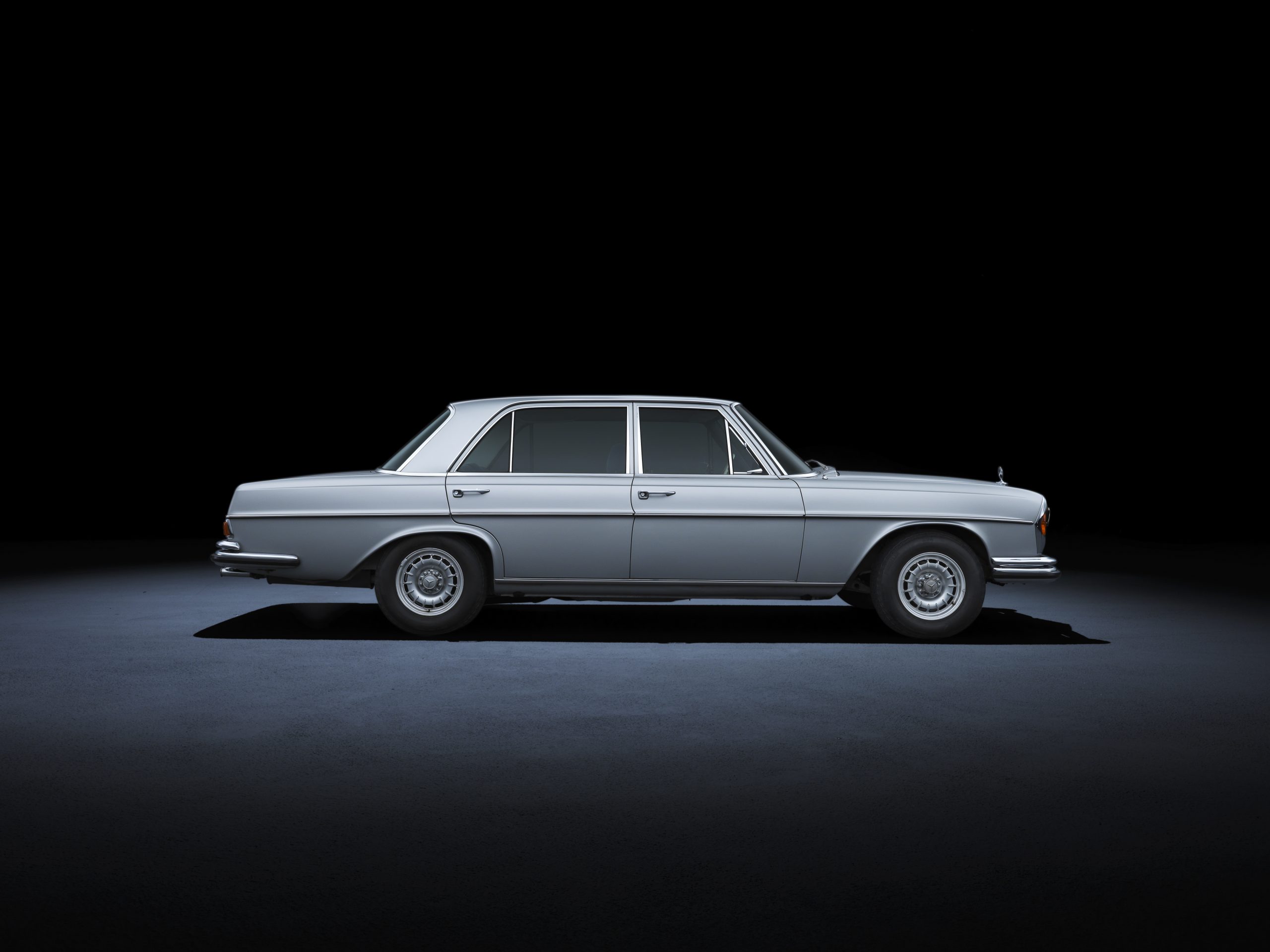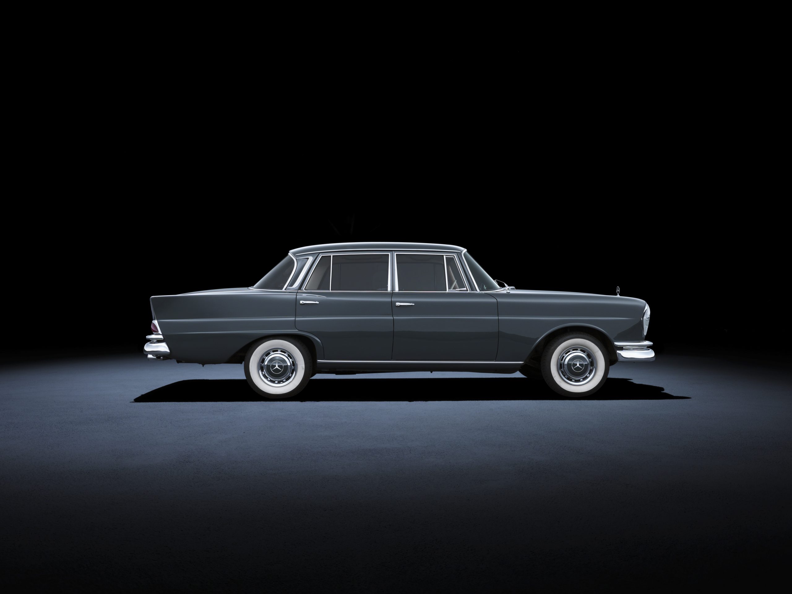 Die 1959 eingeführten „Heckflosse“-Modelle“ 220, 220 S und 220 SE (W 111) erhalten ihren Beinamen nach den dezenten Heckflossen, welche die hinteren Kotflügel zieren und die wegen ihrer Funktion als Einparkhilfe offiziell „Peilstege“ genannt werden. Die neue Oberklasse-Generation ist ein ganz besonderer Meilenstein der Automobilgeschichte, weil hier die von Béla Barényi erdachte Sicherheitskarosserie mit Knautschzonen und stabiler Fahrgastzelle erstmals in einem Serienautomobil umgesetzt wird. Das 1961 präsentierte Topmodell der Modellreihe 300 SE (W 112) ist serienmäßig mit Luftfederung und dem neu entwickelten Automatikgetriebe von Mercedes-Benz ausgerüstet. Dieser Typ begründet 1963 in seiner Langausführung eine neue Tradition in den Oberklasse-Limousinen von Mercedes-Benz: Der 100 Millimeter längere Radstand bietet den Fondpassagieren ein deutliches Plus an Beinfreiheit und Reisekomfort. Die Limousinen der Baureihe 108 und 109, welche die „Heckflossen-Modelle“ 1965 ablösen, zeichnen sich durch ein zeitlos-elegantes Design und großzügig dimensionierte Fensterflächen aus. Neben den Modellen mit konventioneller Stahlfederung – intern der Baureihe 108 zugeordnet – gibt es luftgefederte Varianten (Baureihe 109), die von Beginn an auch mit 100 Millimeter längerem Radstand erhältlich sind. Ein besonderes Highlight ist der 1968 präsentierte 300 SEL 6.3. Das Topmodell der Baureihe verfügt über den leistungsstarken V8-Motor der Highend-Limousine Mercedes-Benz 600 und bietet neben höchstem Komfort und luxuriöser Ausstattung Fahrleistungen auf Sportwagenniveau.