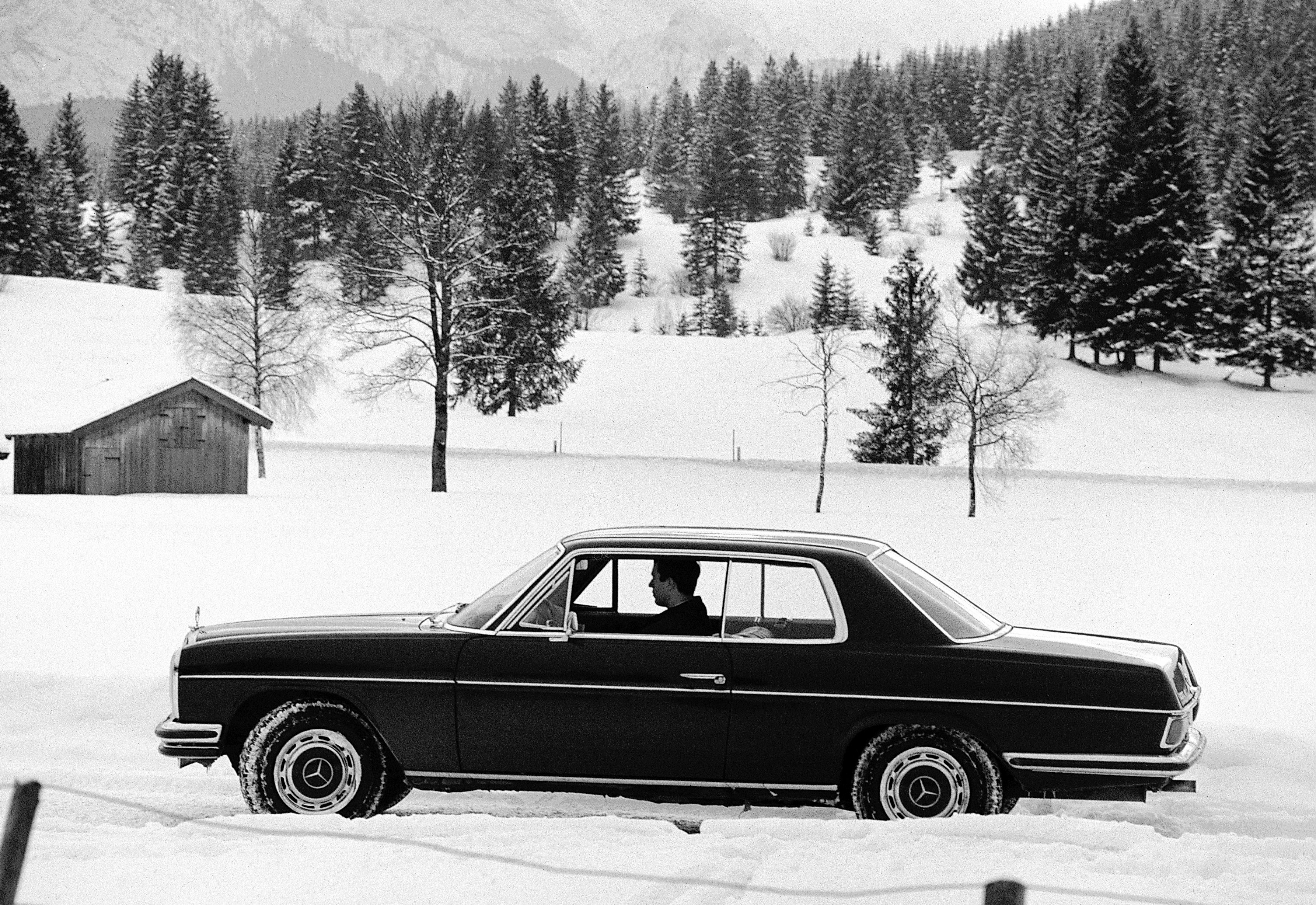 Gute Figur im Schnee: Mercedes-Benz Coupé der Baureihe 114 aus dem Jahr 1969.