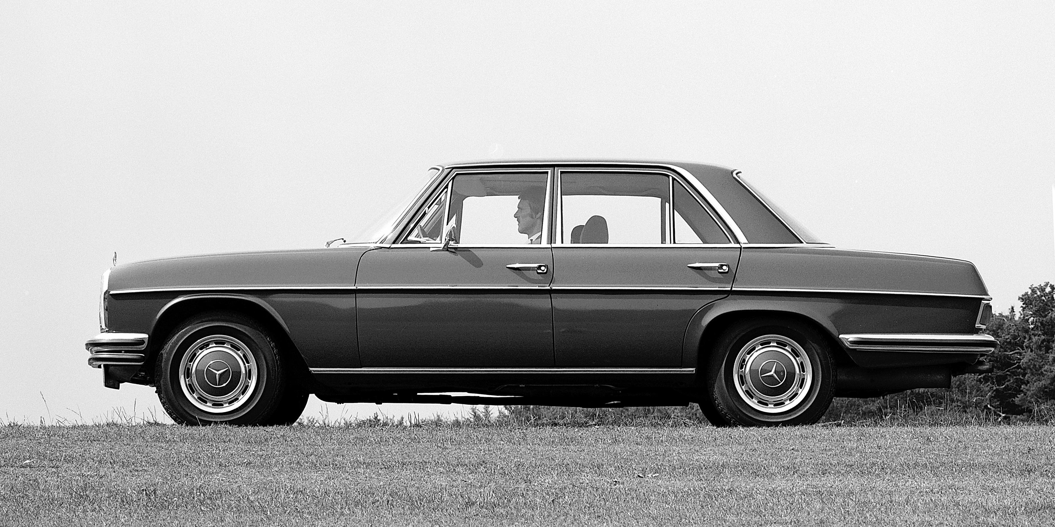 Die Stuttgarter stellen nach der neuen Oberklasse von 1965 (Baureihen W 108 und W 109) nun erstmals einen formal und technisch eigenständigen Entwurf für Automobile der oberen Mittelklasse vor. Das Ideal der klaren Linienführung des S-Klasse Vorgängers W 108/109 ist bei den Strich-Acht-Typen noch konsequenter umgesetzt. Die Limousine zeugt von Solidität und der Liebe zur technischen Innovation, sie spiegelt das Bewusstsein ihrer Entwickler um die neu definierte Rolle einer mittleren Baureihe wider.