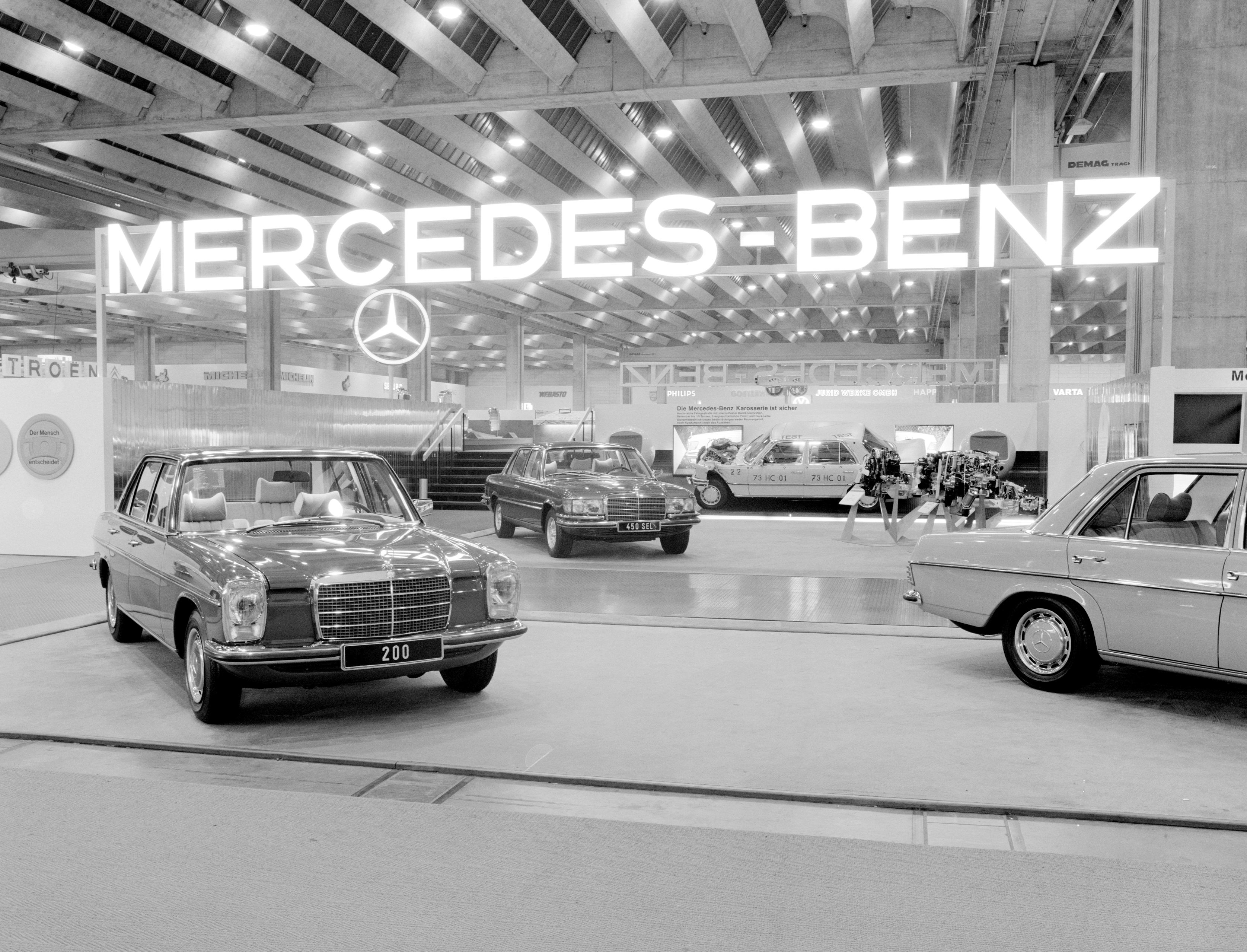 Vielfältig: Die mittlere Baureihe 114/115 und die S-Klasse W 116 sind Ikonen ihrer Zeit, hier auf der IAA 1973.