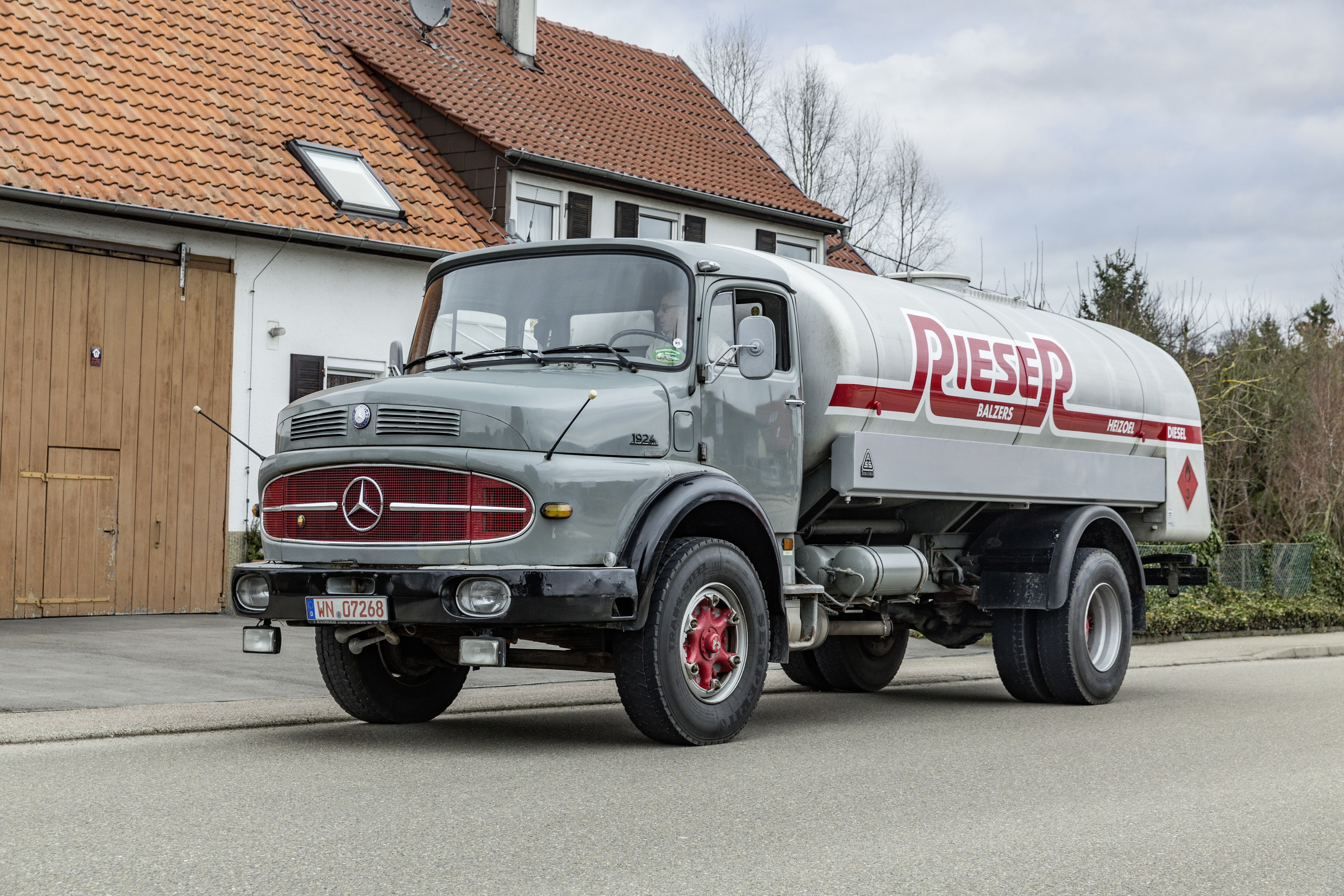 Ebenfalls zur Gattung der Tankwagen, wenngleich für andere Flüssigkeiten ausgelegt, war das Exponat Mercedes-Benz Tankwagen LK 1924 aus 1972 unterwegs. Das Fahrzeug ist ein typischer Vertreter jener Zeit, ein Rundhauber-Schwerlastwagen, wie sie von 1958 an gebaut wurden und so erfolgreich waren, dass sie noch bis in die Mitte der Neunziger Jahre in modifizierter Form für den Export im Programm waren.