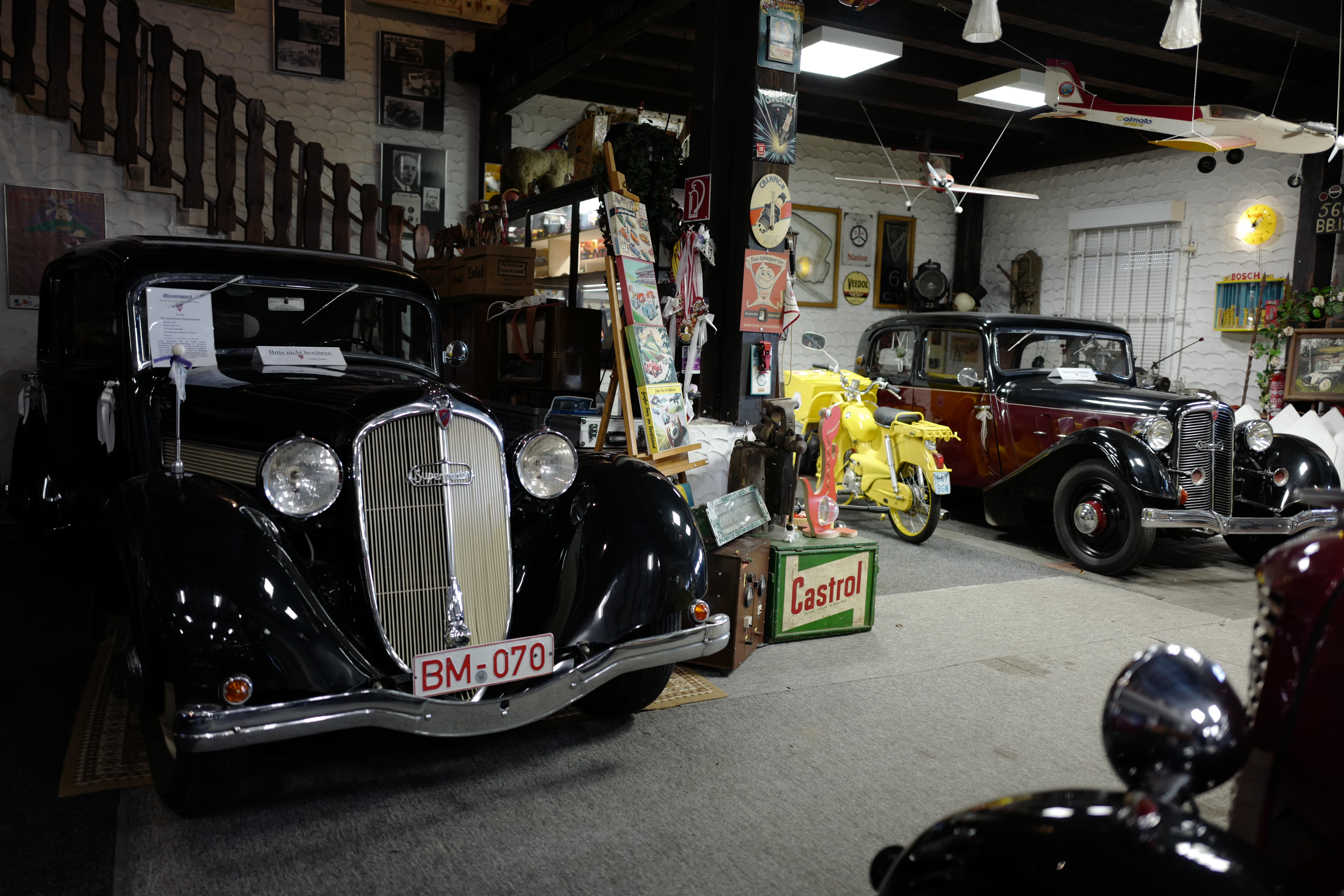 Neben den Fahrzeugen befinden sich hier auch zahlreiche Produkte der Rosengart-Werke aus der Zeit um 1903, als Lucien Rosengart seine erste eigene Manufaktur gründete. Über die Jahre hat er u.a. Peugeot und Citroen geholfen, aber leider musste selbst er im Jahre 1953 den letzten Betrieb schließen.