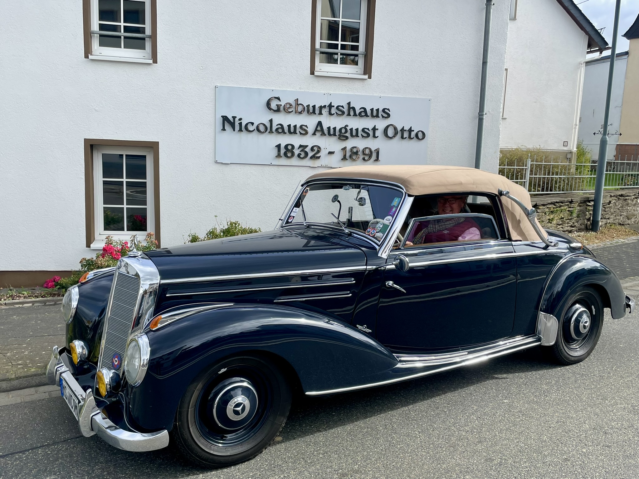 Über Landstraßen im offenen Cabrio entlang an Rhein, Lahn (vorbei am Geburtshaus von Nicolaus August Otto, 1832-1891) und Main bis nach Marktheidenfeld. Übernachtung und Abendessen im Hotel „Anker“ mit Geschäftsfreunden im Hotel Anker Sehr gemütlich!