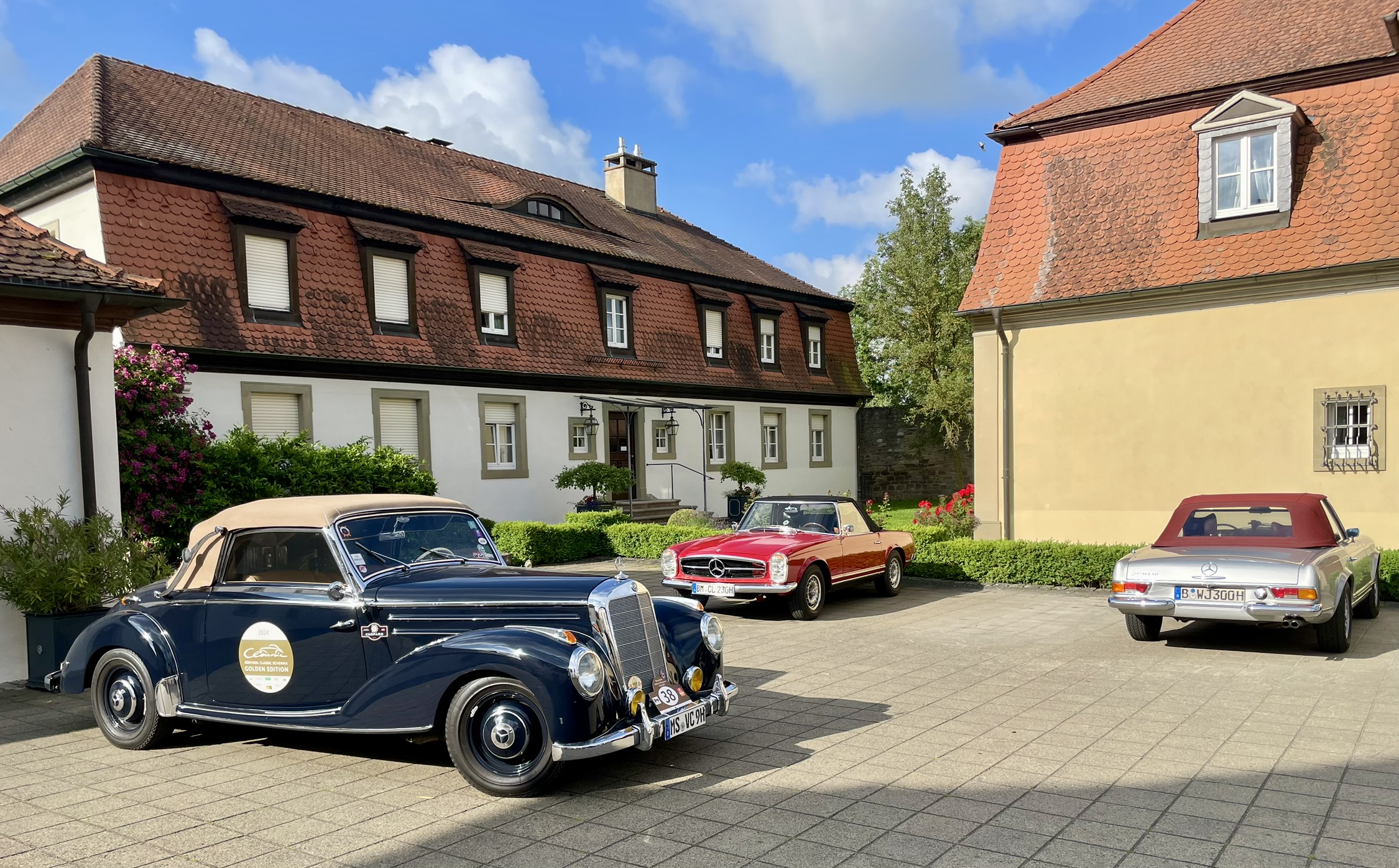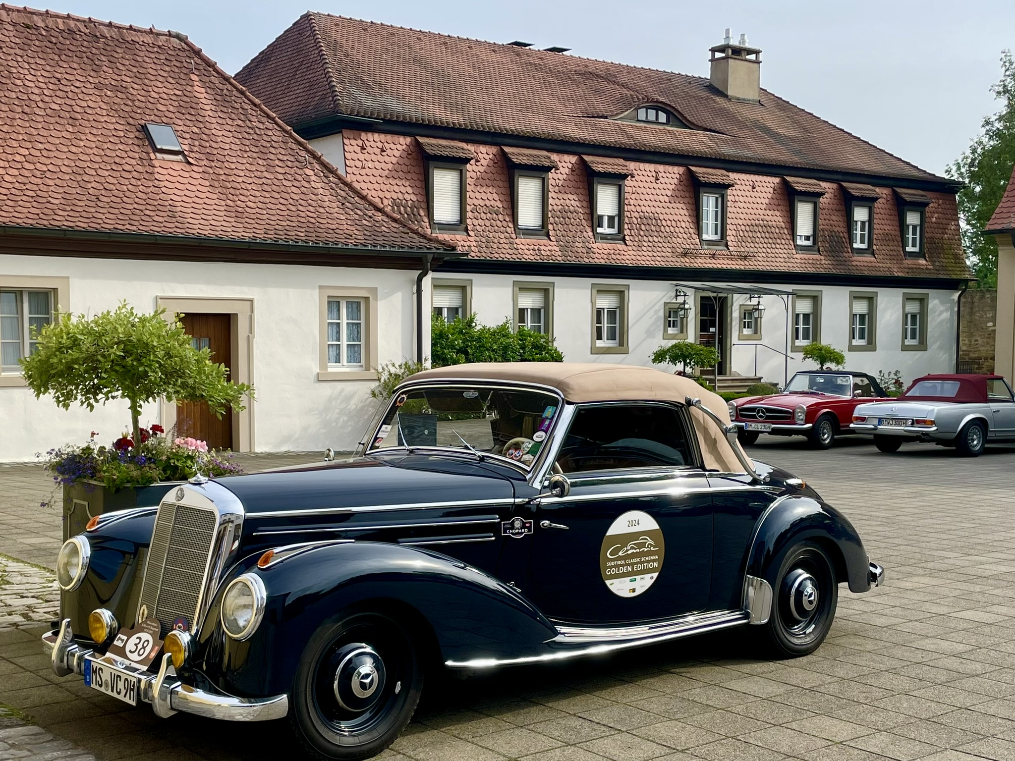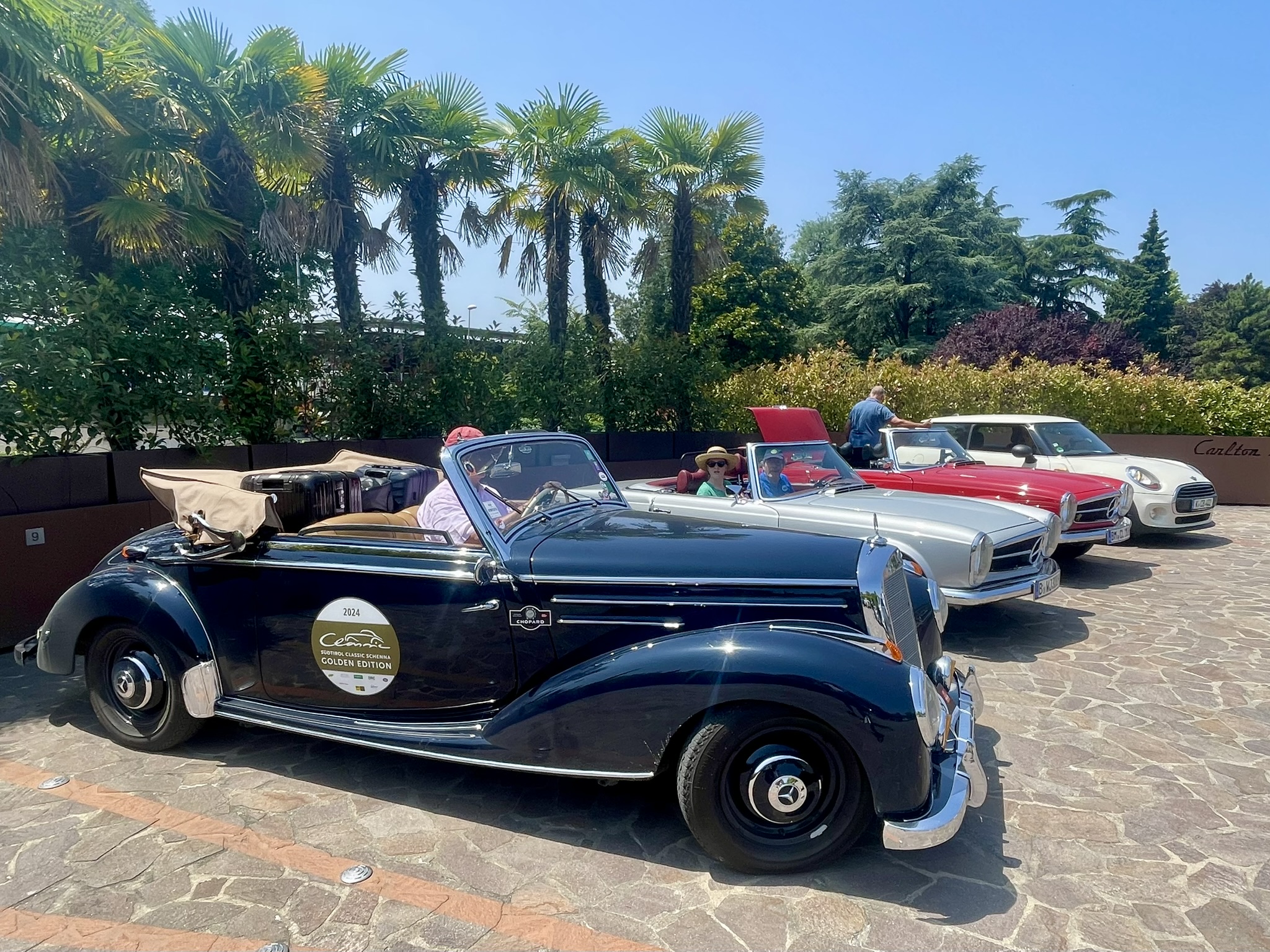 Die „ARACI MotorValley“, organisiert von Rotary Treviso und Modena, begann am 14. Juni 2025 abends mit einem Come together in Treviso bei Venedig. Die beiden Kölner Rotarier Horst und Cornel hatten sich mit ihren Ehefrauen angemeldet – und Carlo vom Rotary-Club Münster 1648 war so nett, Gert als Beifahrer mitzunehmen. Also verabredeten wir, gemeinsam und vor allem ganz gemütlich von Köln aus auf eigener Achse und überwiegend über Landstraßen nach Treviso anzureisen. Dann wären wir ein kleiner „Mercedes-Konvoi“ aus dem 220er Cabriolet A (W187) von Carlo, dem 220 Sb Coupé (W180) von Horst und dem 280 SL (W113) von Cornel gewesen.