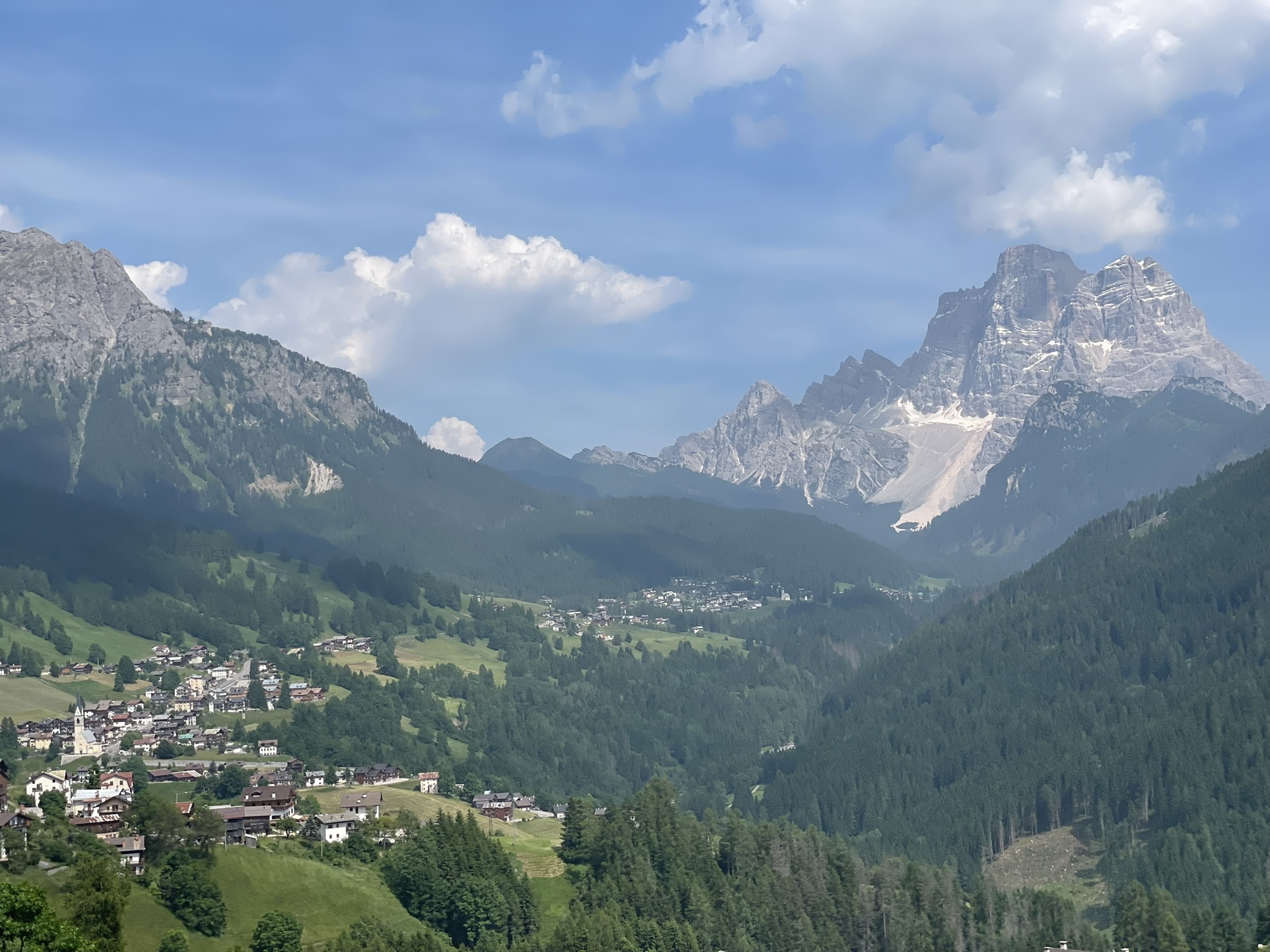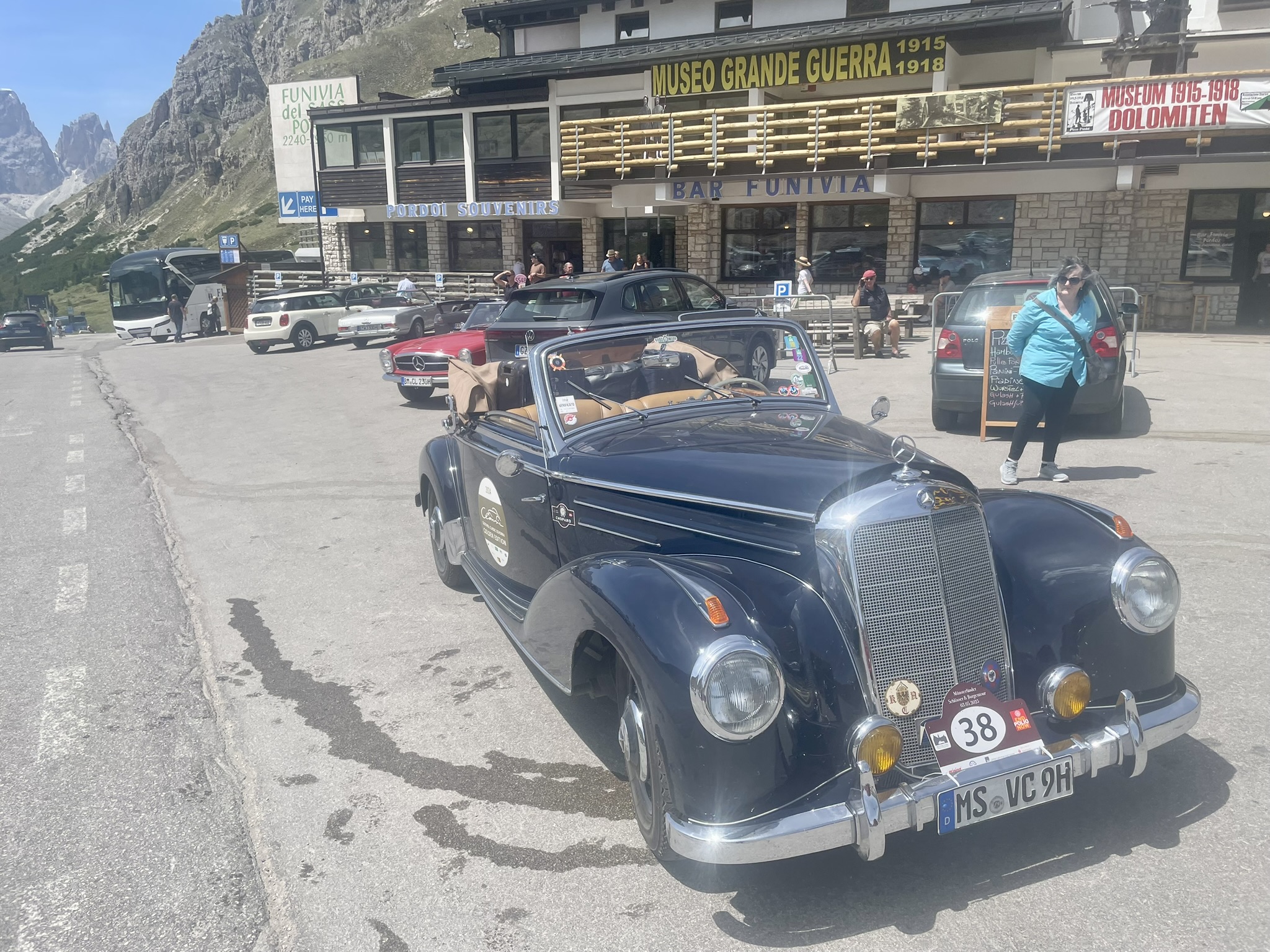 Am 13. Juni 2025 starteten wir zur dritten Etappe. Über Meran, Bozen, Deutschnofen und Welschnofen in die Dolomiten nach Sén Jan, Del Bosco und Canazei zum Pordoipass. Hier mussten wir ein wenig auf Horst warten, der wegen vermeintlichen „Benzingeruchs“ angehalten hatte. Es stellte sich aber alles als harmlos heraus. Also ging es weiter über Selva di Cadore, Arabba, vorbei an der herrlichen Marmolada und Lagazuoi-Panoramen von Livinallongo del Col di Lana, Colle Santa Lucia, Passo Falzarego und Cortina d’Ampezzo ins Val di Zoldo, wo wir uns in einer urigen Eisdiele etwas Entspannung gönnten. Ziel des Tages war Belluno, wo wir im Parkhotel „Villa Carpenada“, einem früheren Bischofssitz mit hervorragender Küche abstiegen.