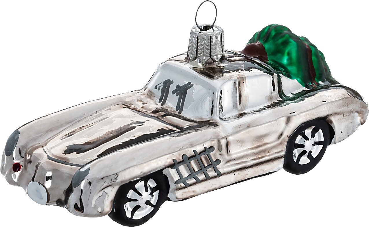 - Weihnachtskugel Mercedes-Benz 300 SL in Silber mit Baum