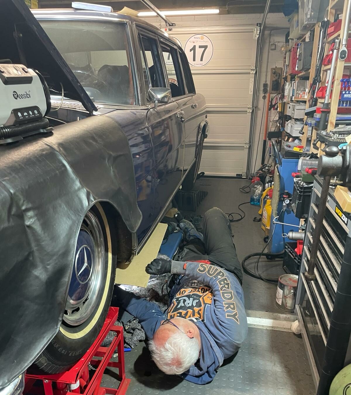 Weil das die zwei Antipoden meines Lebens und meine Leidenschaften sind: Einerseits der Hauptberuf als Schlagzeuger in einem klassischen Sinfonieorchester, andererseits die handwerkliche Arbeit, vor allem mit Oldtimern. Hat mir schon oft Kopfschütteln und Unverständnis eingetragen, aber was soll’s? Schon in der Musikhochschule wurde ich oft VOR dem Haus schraubenderweise angetroffen, und Schrottplätze machten mich seliger als die Harmonielehre. Ich glaube, die beiden so gegensätzlichen Lebensbereiche haben sich wechselweise befruchtet. Vor allem aber habe ich in meiner so untypischen Karriere gelernt, dass man sich nie ins Bockshorn jagen lassen sollte….